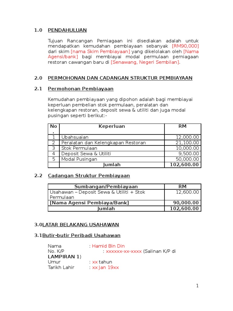 Rancangan Perniagaan Restoran Pdf