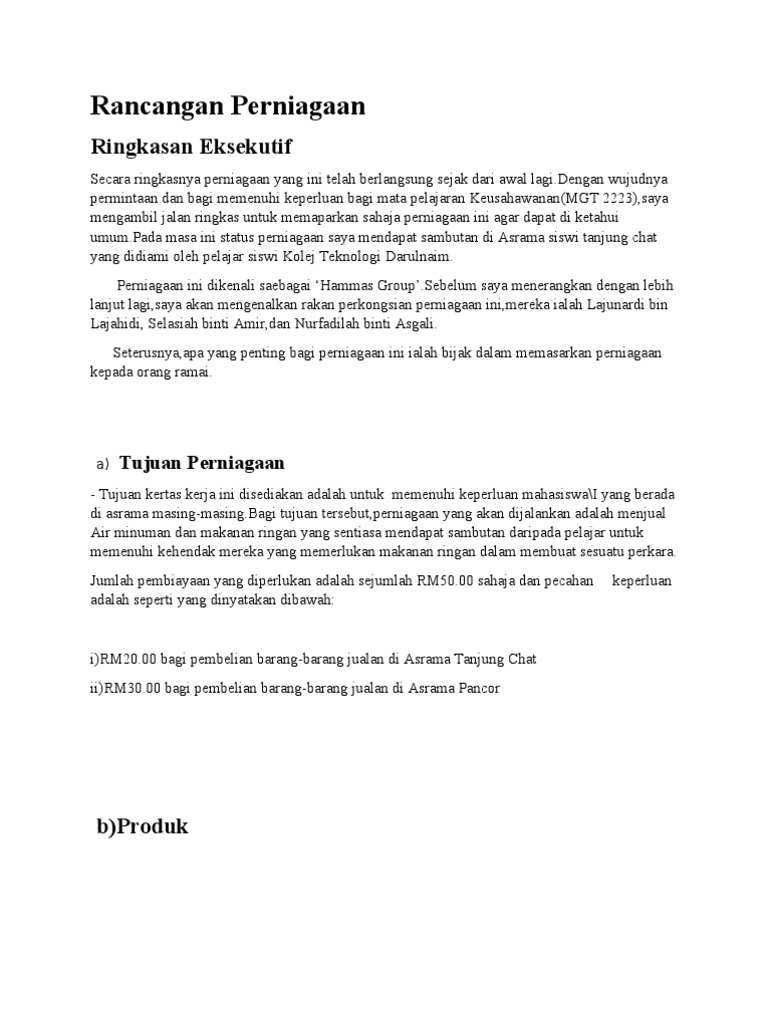 Doc Contoh Rancangan Perniagaan Shahrul Kamal Ramli Academia Edu